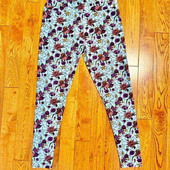 LulaRoe Gray Tall & Curvy Floral Rose Leggings