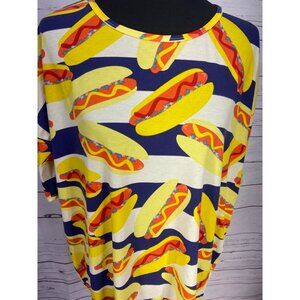 LulaRoe Hotdog Irma Hi Low Tee Women Large Casual 4th July Summer Novelty Top