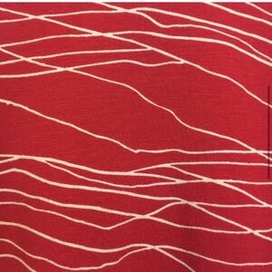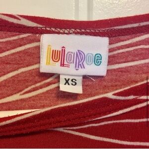 LulaRoe Irma Red with Gray Size XS. Gently used. Some very slight pilling. 96% polyester. 4% spandex. Smoke free pet free home. J