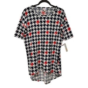LulaRoe Irma Tunic Short Sleeve Red White Navy Blue Houndstooth XXS-XS 00-0