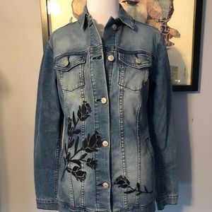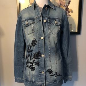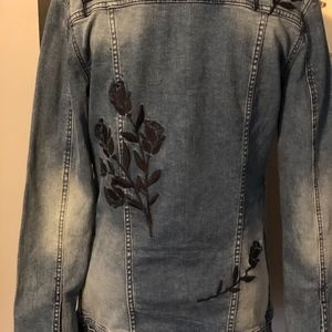 LulaRoe Jaxon Jean Jacket, Blue with NAVY flowers embroidered around the jacket. Excellent condition, never worn but has no tags. Size: XSMALL