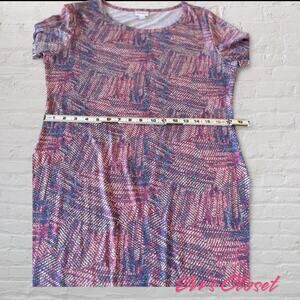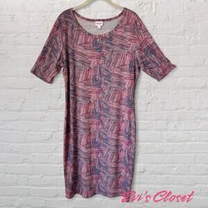 LulaRoe Julia Bodycon Pink & Blue Abstract NWOT Pullover Dress SZ Large