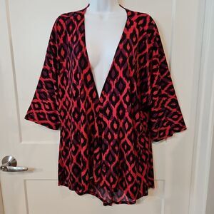 Soft, stretchy, flowy. Open front,3/4 sleeve, vibrant colors. Like new, see all photos.