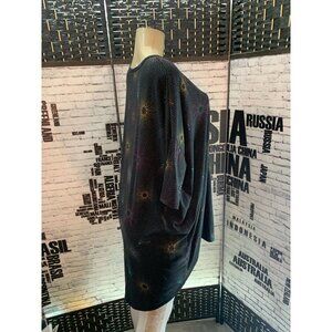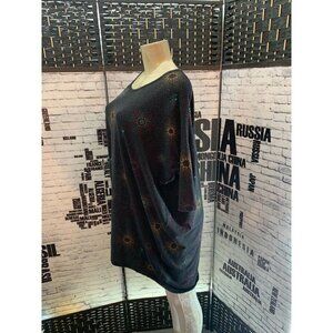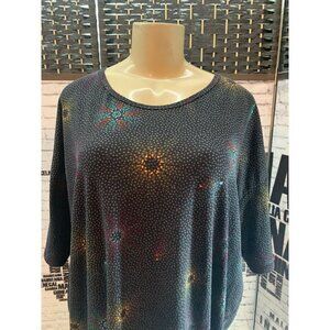 LulaRoe L Black Dot Galazy Print Crew Neck Step-Hem fitted 1/2 Sleeve Top