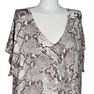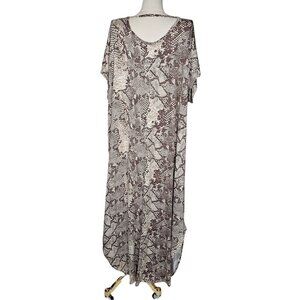 LulaRoe Macy Back V-Neck Maxi Dress Snake Animal Print Side Slit Tan Womens 2XL