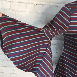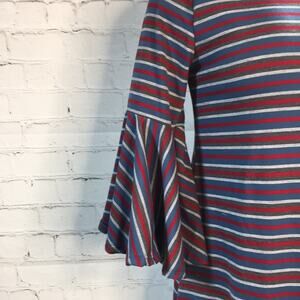 LulaRoe Maureen Dress Red White Blue Stripe Ruffle Bell Sleeve Ruffle Hemline XS