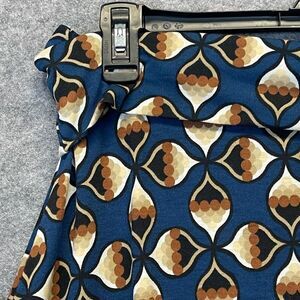 LulaRoe Maxi Skirt Large Navy Ankle Length Blue Brown Geometric Flowy A-Line EUC