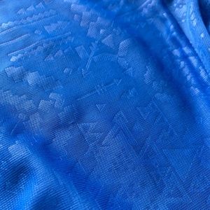 LulaRoe Monroe Kimono Blue with Coral Fringe Small