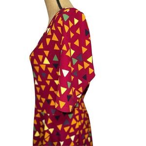 LulaRoe Nicole Dress Size 2XL Maroon Multi Colored Triangle Fit Flare A Line