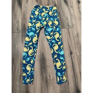 LulaRoe One Size Blue Yellow Dinosaur Leggings "Unicorn Rare Print"