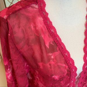 LulaRoe Pink Floral Sheer Duster Kimono Cardigan in great gently used condition. Size small and displayed on size small mannequin. Pink floral pattern throughout with pink lace trim. Approximately knee length (depending on a person’s height).