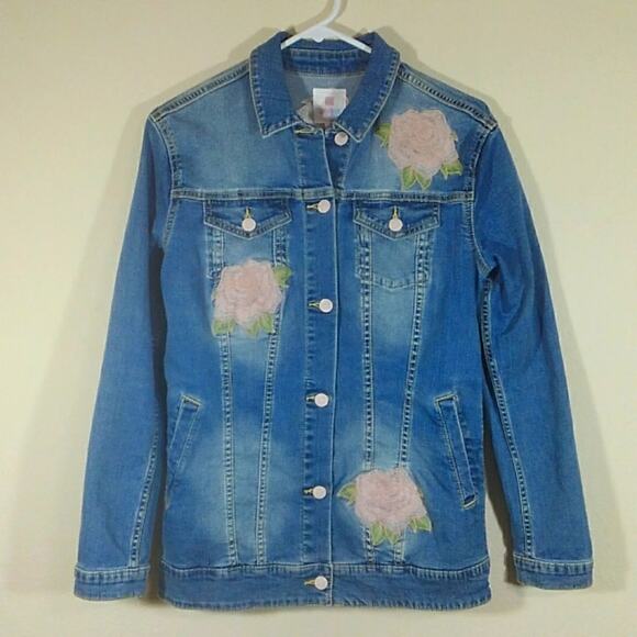 LulaRoe Pink Rose Embroidered Denim Jean Jacket S