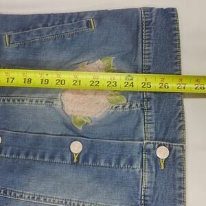 LulaRoe pink rose embroidered denim jean jacket. Featuring several pink roses embroidered on the front and back. This medium wash, jean jacket is in excellent pre-owned condition. Tag size S. Please look at the photos. They show the actual measurements taken laying flat. Pit to pit 18", length 27".