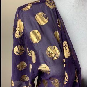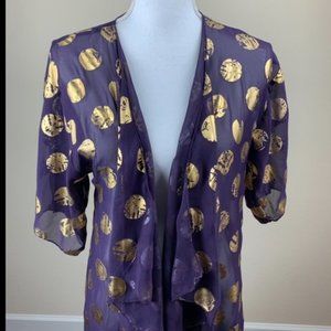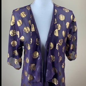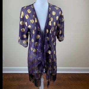LulaRoe Purple & Gold Polka Dot Fringe Boho Kimono small
