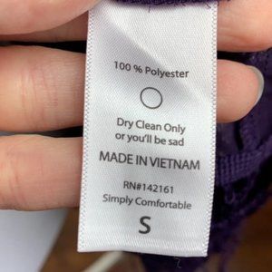 Lularoe Purple & Gold Polka Dot Fringe Boho Sheer Kimono in good gently used condition. Size small and displayed on size small mannequin. Deep purple sheer color with gold polka dot pattern. Fringe trim. The kimono is in good condition. Size small.