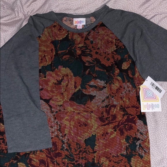 New with tags size small LulaRoe Randy. Orange, red , yellow and green cross stitch rose body with Gray sleeves. Perfect for those upcoming fall days 🍁