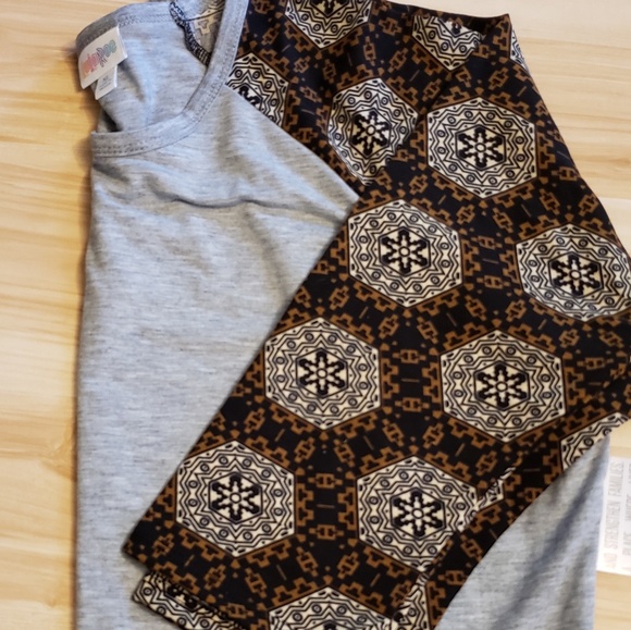 LulaRoe Randy . Grey body with brown, black and cream sleeves