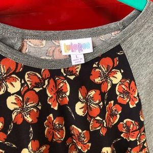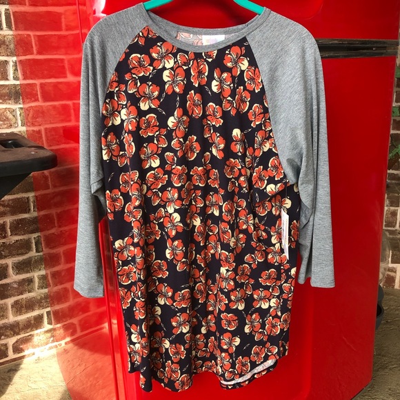 3/4 sleeve shirt with gray sleeve and flowery pattern