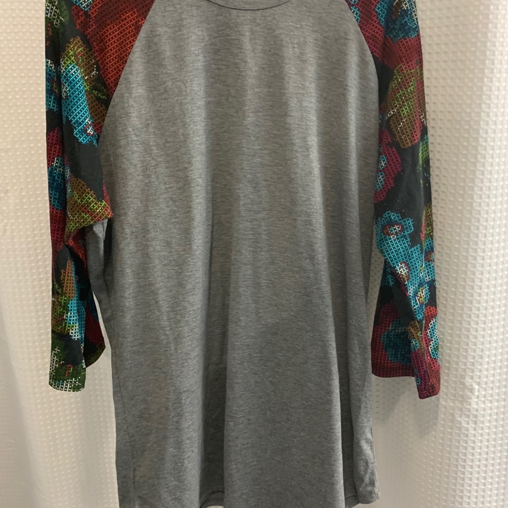 Gray Randy with cross stitch flowers on the sleeves. Baseball t style