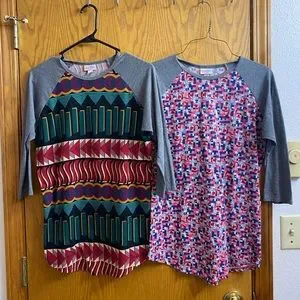LulaRoe Randy, 3/4 sleeve t-shirt. There are 4 here. Let me know which one(s) you are interested in buying. Will make a deal for all 4.