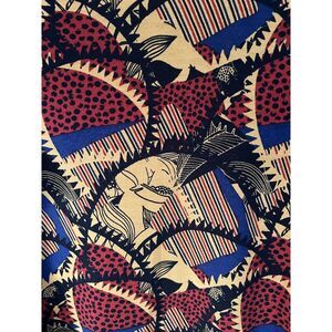 Raglan sleeves in 3/4 length. Vibrant abstract print.