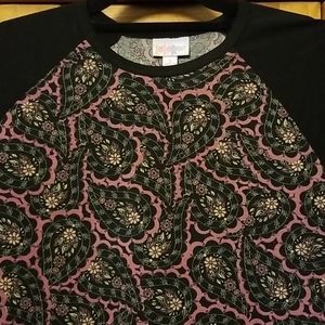 Beautiful print on this "Randy" by LulaRoe. Crew neck. Baseball T style 3/4 length black sleeves. Extremely comfortable. Size small. Stock photo included for sizing & look.