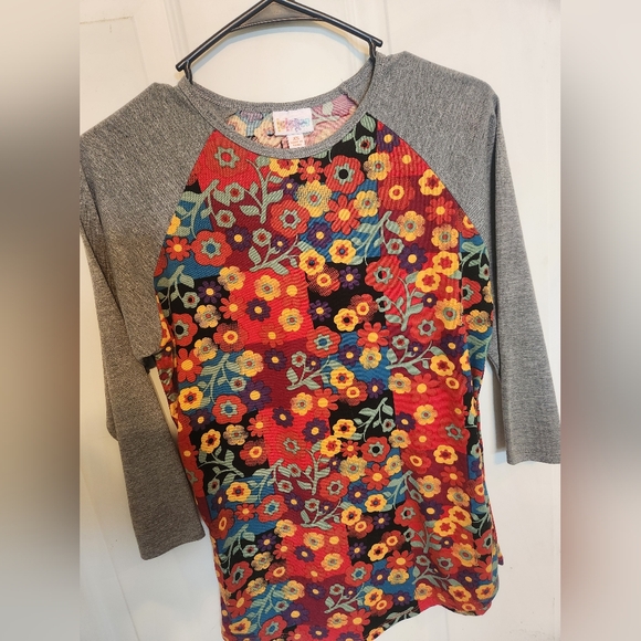 LulaRoe Randy shirt with grey sleeves and floral print. Size XS Polyester/Spandex fabric , stretchy. 3/4 length sleeves