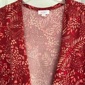 LulaRoe SARAH NWT Brick Red Floral Cardigan Sweater Pockets Long Duster Size XS