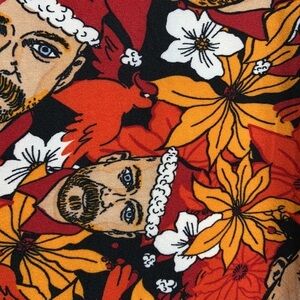 Women’s LulaRoe Blue Eye Santa Clause Red Poinsettia Print Short Sleeve Shirt