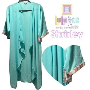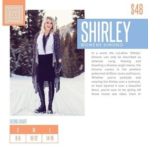In a word, the LuLaRoe "Shirley" kimono can only be described as ethereal. Long, flowing and boasting a dreamy angel sleeve, the kimono comes in the prettiest patterned chiffons, laces and haccis.