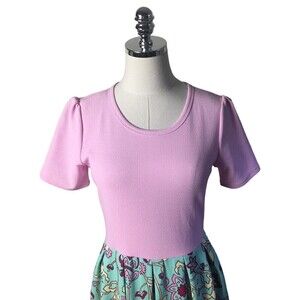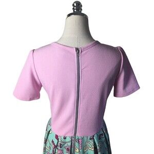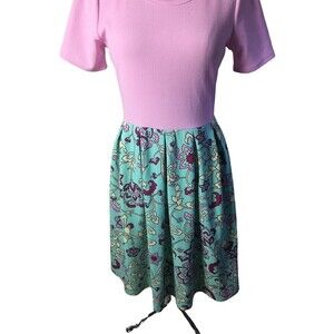 LulaRoe Size Medium Amelia Dress Pink Top Aqua Background with Floral Print NEW
