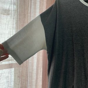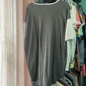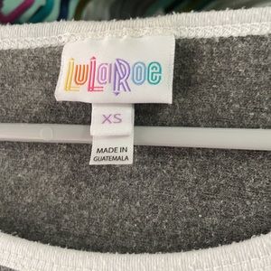 LulaRoe T-shirt. Grey with white sleeves. Good used condition.