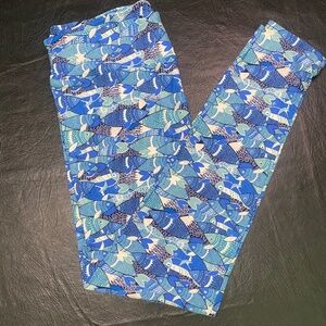 LulaRoe Leggings TC (Tall & Curvy) - Fits sizes 12-18. NWOT. Smoke Free home. Cute fish. Color: Blue and white. LulaRoe does not put tags on leggings.