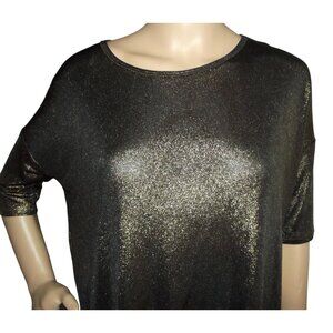 LulaRoe Tunic Top Womens Size XS Metallic Gold Black sparkle hi lo hem round