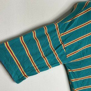 LulaRoe Women Blouse Size Medium Striped Green Yellow Short Sleeve Tunic Pullover