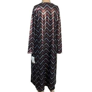 Elevate your style with this gorgeous LulaRoe Womens Sarah Duster Cardigan. The long sleeve, sparkling metallic duster cardigan is perfect for any occasion. Featuring a stunning multicolor chevron pattern, this lightweight and breathable cardigan is made of a blend of polyester and spandex, ensuring a comfortable fit. Ideal for travel, wedding, party, cocktail, casual, formal, workwear, or business attire, this cardigan is perfect for women who want to make a statement. The hand wash only garment care and regular size type makes it easy to care for and suitable for any body type. Add some glitter and metallic accents to your wardrobe with this stylish cardigan and let it be your go-to all-season outfit.