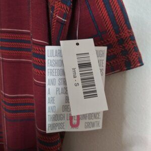 This LuLaRoe Irma Tunic Top in size small offers the perfect blend of comfort and style. Designed with a flattering high-low hemline, it provides extra coverage in the back and pairs beautifully with leggings, skinny jeans, or jeggings. The red plaid pattern adds a timeless and versatile touch, making it an excellent choice for casual outings, layering, or festive seasonal wear.