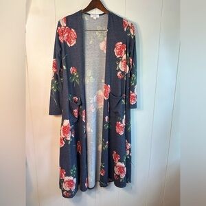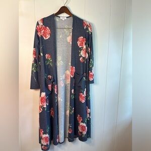 LulaRoe Women’s Navy and Pink Floral Open Cardigan Size Small
