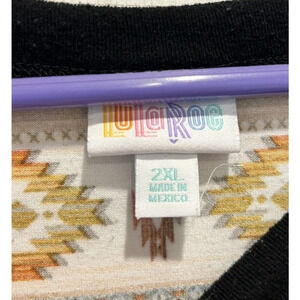 LulaRoe Womens Top sz 2XL Orange Yellow Aztec Short Sleeve Crew Neck Stretch