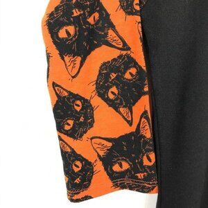 LulaRoe Womens XXS Randy Tee TShirt Cat Print Black Orange 3/4 Sleeve Halloween