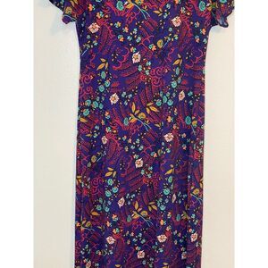 LulaRoe XS Maxi Dress Short Sleeve Scoop Neckline Stretch Polyester Spandex