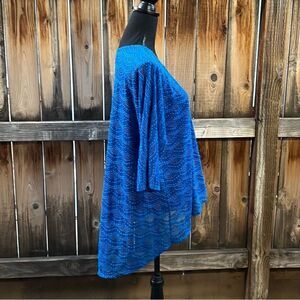 LulaRoe cardigan textured blue lace hi-lo short sleeve sheer knit Small