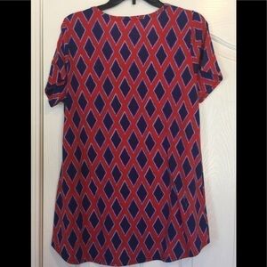 LulaRoe navy blue diamond pattern and red background, short sleeve,