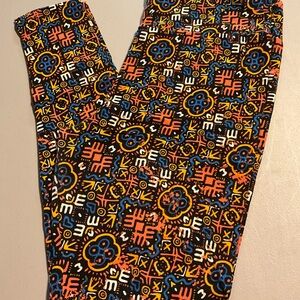 LulaRoe print high waisted soft buttery leggings in size TC which is 12-18. These have been worn a couple times and are in great condition.