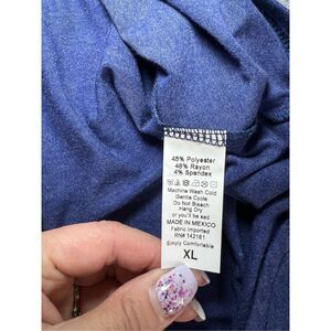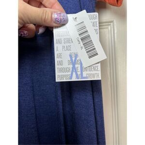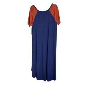 LulaRoe Dress Womens Size XL Blue Rust Carly Swing Midi Hi-Low Short Sleeve NWT