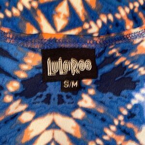 LulaRoe cardigan kimono maxi pockets blue red white geometric Sz S/M