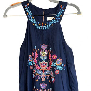 LulaSoul Navy Blue Embroidered Halter Dress Size Medium