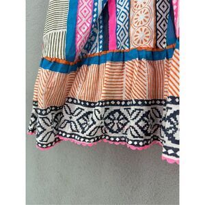 Lulalife Women Multicolor Light Cotton Striped Abstract Shirred Midi Dress SizeLarge