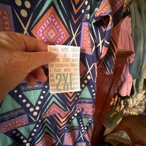 Lularoe 2X navy blue ANA maxi dress with fun dot /geometric pattern. NWT.