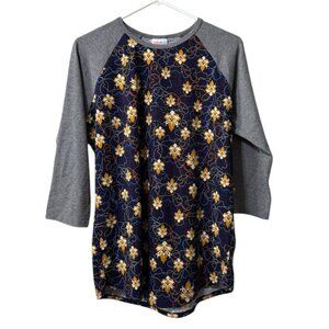 Lularoe 3/4 Sleeve Knit Raglan T-Shirt Casual Floral Top Womens Size Large Fall